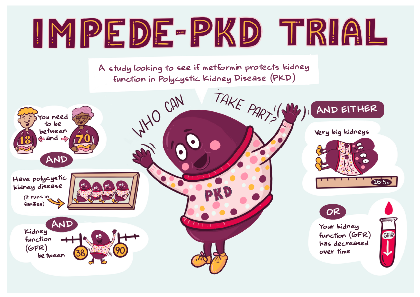 IMPEDE-PKD are studying whether metformin is helpful in protecting kidney function for people with ADPKD.